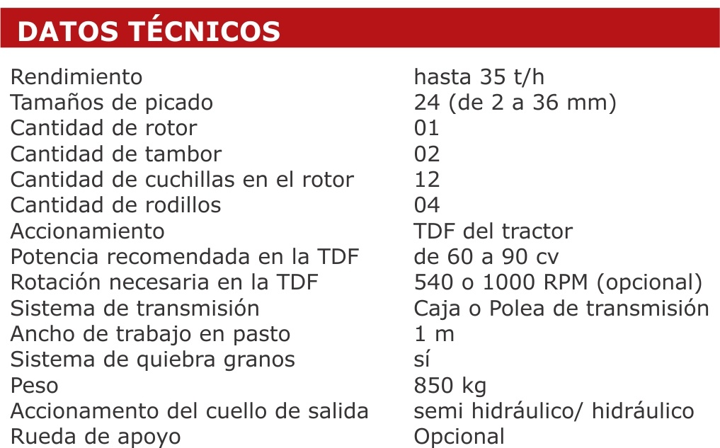 Su sistema picador también cuenta con el reconocido sistema quebrador de granos que garantiza un picado uniforme, esencial para la producción de un silo de calidad y alto valor nutricional.
